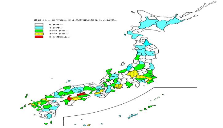 図5 1993 年から2022 年の30年間で渇水による上水道の減断が発生した地域