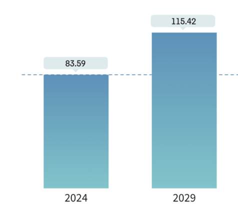 図1に Mordor Intelligence™ Industry Reportsが公表している日本のデータセンターにおける水消費量の水位予測を示した。日本におけるDCの水消費量は、2024年には約835.9億リットル(8359万トン)に達し、2029年には年平均成長率6.5%以上で約1154.2億リットル(1億1542万トン)に達すると予測されている。