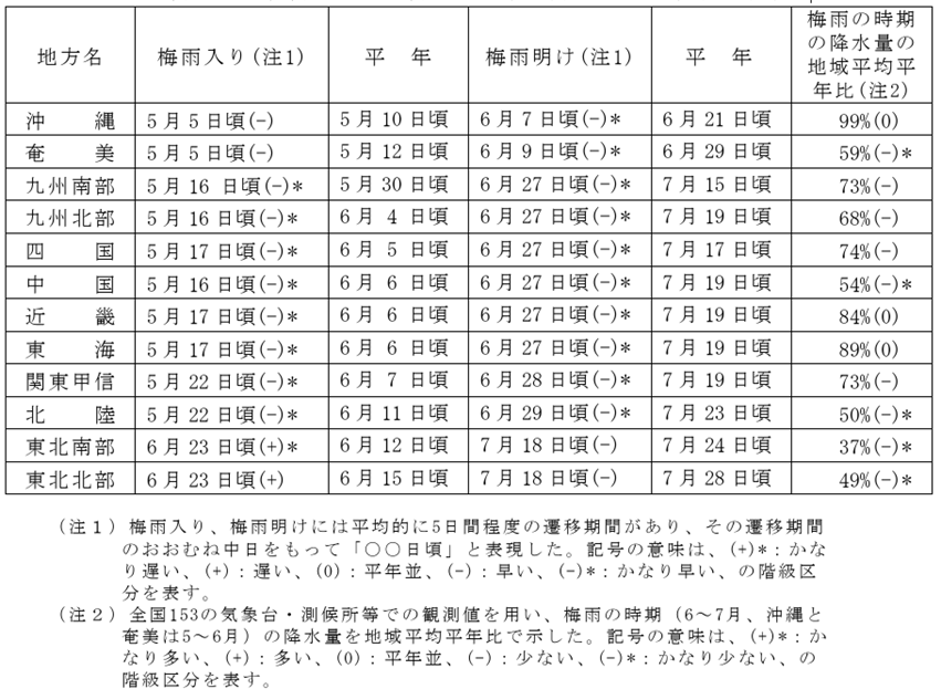 出典:気象庁 2025年(令和7年)の梅雨入りと梅雨明け(確定値)[iii]