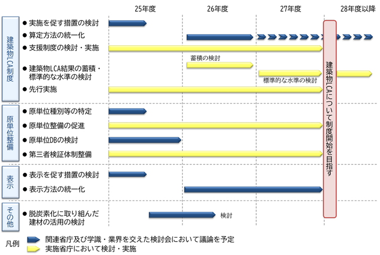 図2. 建築物ライフサイクルカーボン削減に向けた日本政府の検討施策ロードマップ