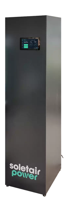 Soletair Powerの「室内用DAC空気清浄機」は、会議室やオフィスなどの限られた空間でCO₂を効率的に捕集し、室内空気の質を向上させるために設計されたスタンドアロン型の装置である。同ユニットは、0.4m×0.4m×1.5mのコンパクトなサイズで、1台で1日あたり約50kgのCO₂を捕集する能力を持つ。