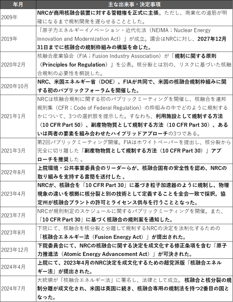 表1. 米国における核融合規制の歩み